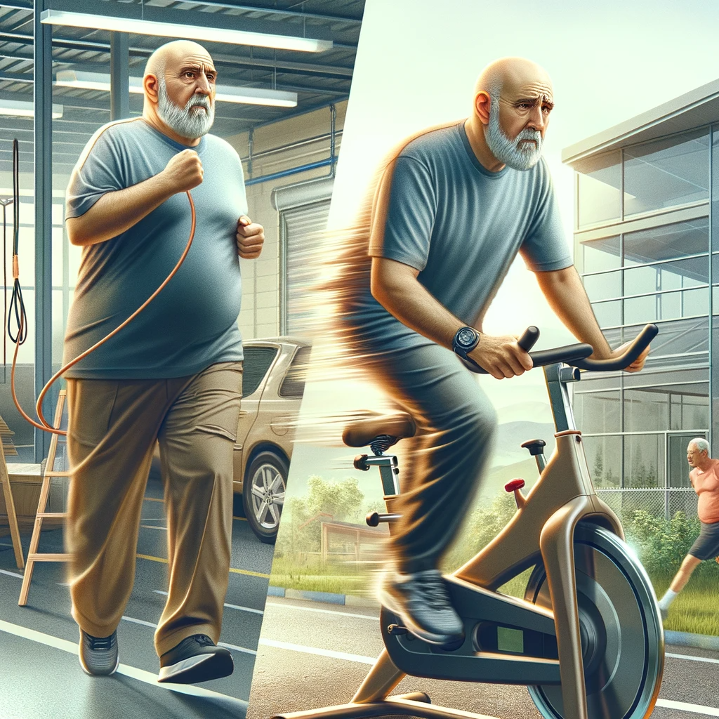 At the current time, I am only able to incorporate walking and cycling into my plan.  Walking, which is easy, I walk 8 hours a day at a relatively fast pace for work.  I also have a exercise bike for the cycling.  Come summer, I’ll clear the carport and be able to jumprope.  I have no way to include swimming at this time, although I may try to budget a membership at a local fitness center in nearby hospital sometime in the future.