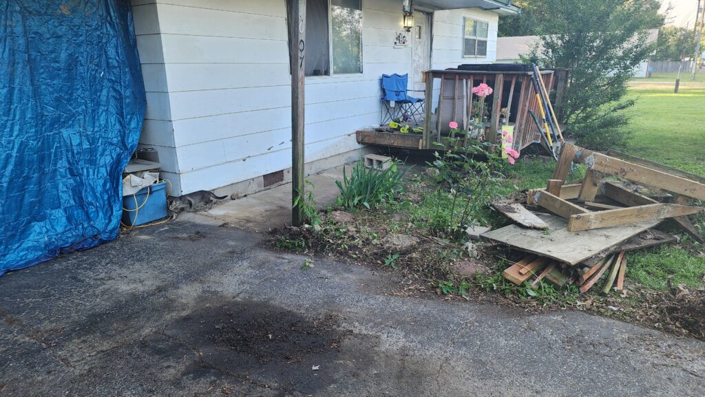 Front section of the house.  At the time of the picture, i’d just finished tearing down the ramp that led up to the porch.  Still a LOT to do to the house, inside and out.  But time & money make it a slow process.