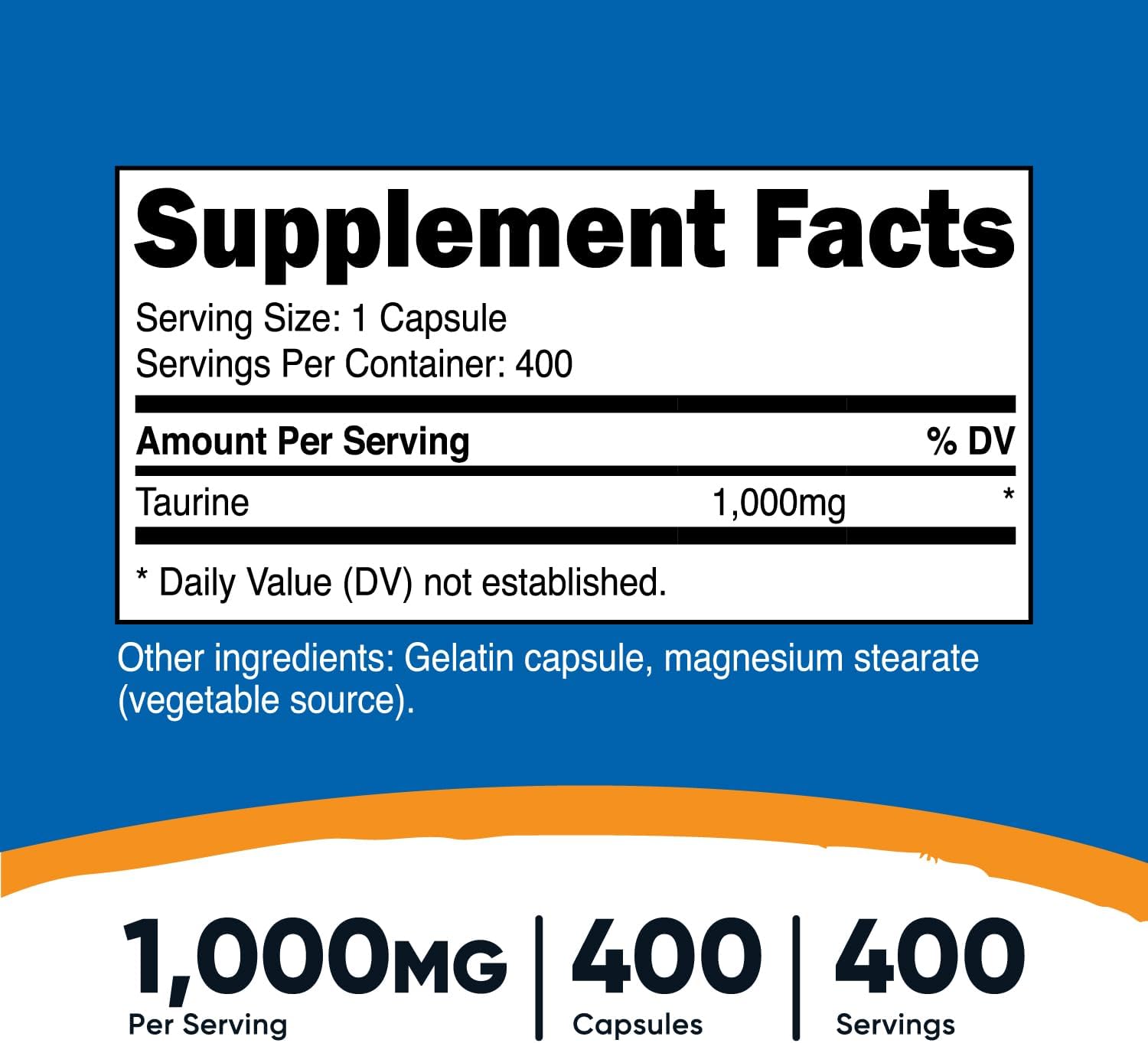 • 400 Taurine Capsules Per Bottle