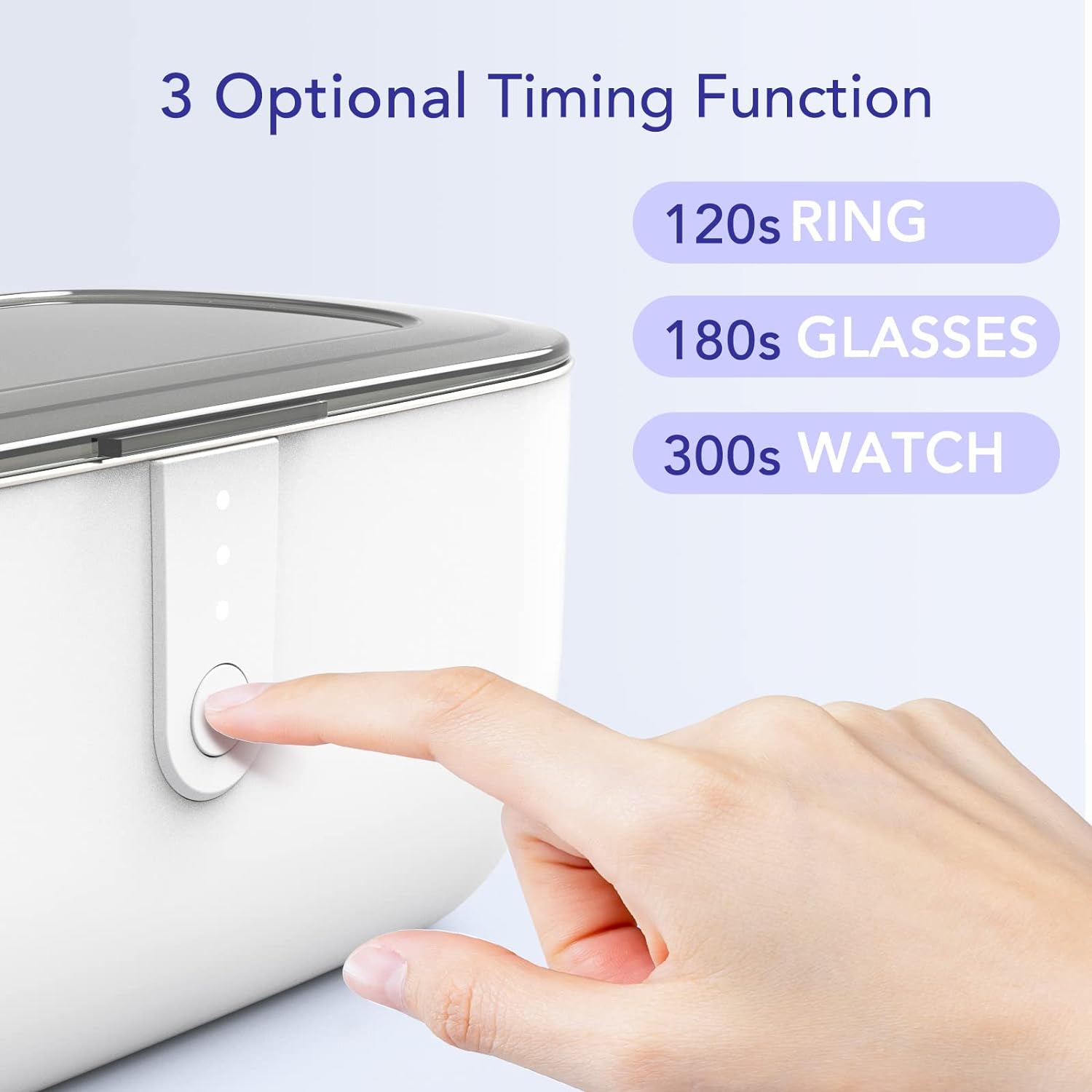 - 【EASY TO USE】Extremely easy to operate. Only one button to operate this machine. The jewelry cleaner machine adopts 3 selective cleaning modes (120s, 180s& 300s), you can freely choose the cleaning time according to different contamination of different objects. This ultrasonic jewelry cleaner will automatically shut off when the cleaning process is done. ( A bit of liquid dish soap can be added to have a better clean result)